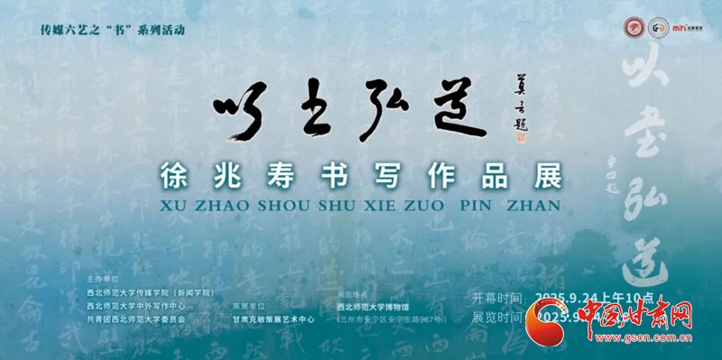 9月24日,“以書弘道——徐兆壽書寫作品展”在西北師范大學博物館一樓展廳開幕。此次展覽由西北師范大學傳媒學院(新聞學院)、中外寫作中心、共青團西北師范大學委員會聯合主辦。