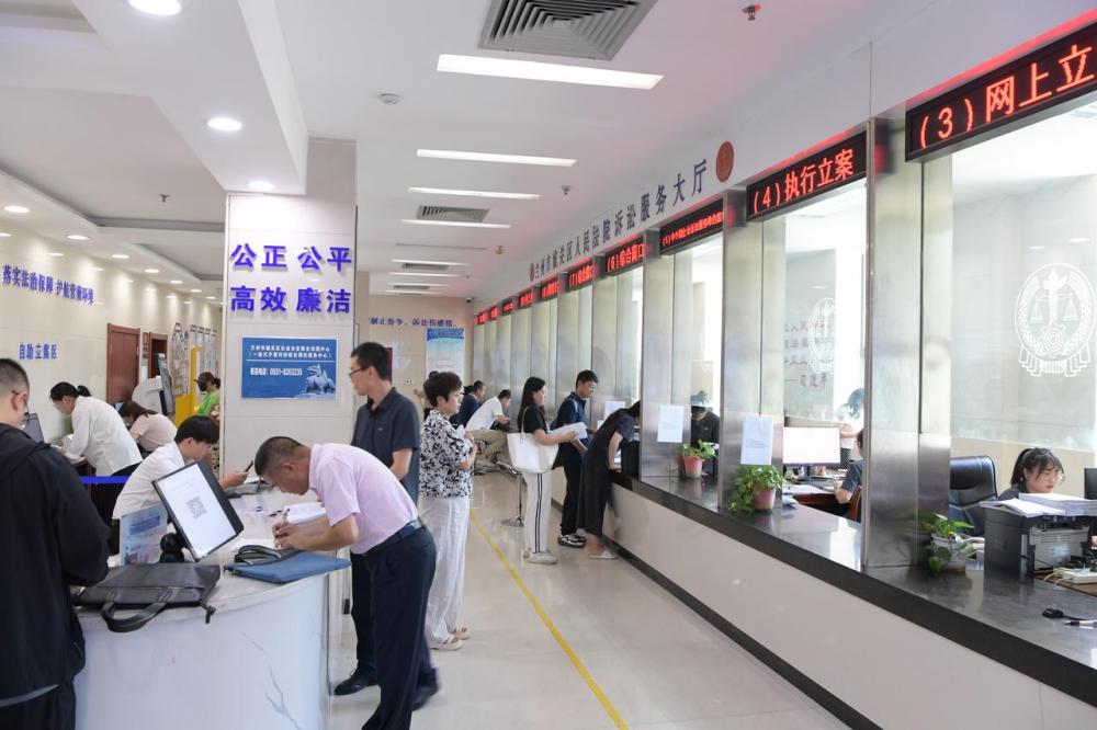 如今,網(wǎng)上立案服務讓大部分當事人及其代理人足不出戶就可以立案。訴訟服務中心集齊了案件查詢、立案、保全、繳費退費等服務功能,并設有專人導訴答疑。即使在辦事的高峰期,各窗口依然運轉有序。