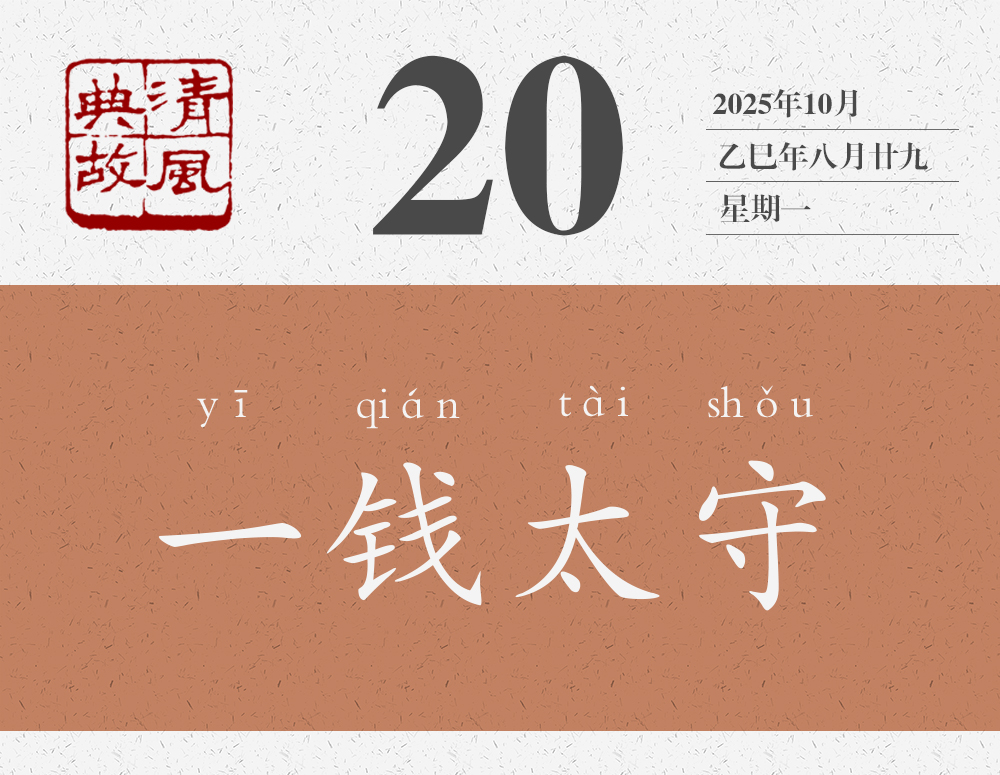 劉寵聽(tīng)了他們的話(huà)說(shuō):“我的政績(jī)?cè)趺茨芟衲鷰孜徽f(shuō)得這樣好呢?真是辛苦你們了!”為表示接受他們的美意,他從每個(gè)人帶來(lái)的錢(qián)中挑了一枚收下了。民間還流傳說(shuō),劉寵出了山陰界,就把收下的幾枚錢(qián)投進(jìn)江里,江水頓時(shí)清澈見(jiàn)底。從此之后,此江便被稱(chēng)為錢(qián)清江。劉寵去世后,人們?cè)诮呅蘖艘粋€(gè)亭子就叫“一錢(qián)亭”,為他修建了一座廟就叫“一錢(qián)太守廟”。“一錢(qián)太守”不僅成為劉寵的稱(chēng)號(hào),也成為后世稱(chēng)頌地方官員為民造福、為政清廉的典故。明人高啟詩(shī)《野老行送陳大尹》:“雞鳴相送拜道邊,愿公受取一大錢(qián)。”