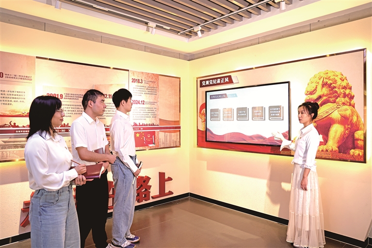 江蘇省無錫市濱湖區(qū)紀委監(jiān)委把學習黨的創(chuàng)新理論擺在突出位置,認真學習習近平總書記關(guān)于黨的自我革命的重要思想,從中汲取紀檢監(jiān)察工作智慧和力量。圖為近日,該區(qū)紀檢監(jiān)察干部在廉政警示教育基地接受教育。徐健聰 攝