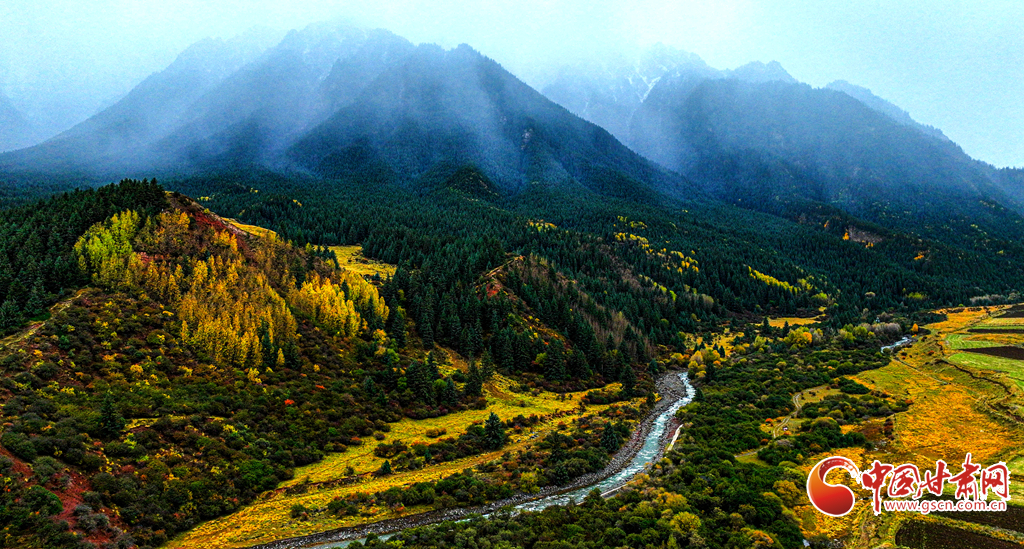 金秋十月,祁連山國(guó)家公園迎來(lái)最絢爛的季節(jié)。雪峰映照著斑斕林海,山霧繚繞其間,原始森林、雪山、草甸、霜葉構(gòu)成垂直景觀帶。雪白、金黃、深紅與湛藍(lán)交相輝映,黃綠為底,紅金點(diǎn)染,宛如一幅渾然天成的油畫。