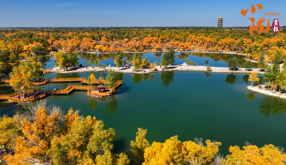 空曠的藍天,寧靜的湖水,絢爛的胡楊,成為秋天最迷人的風景。每到秋季,不少游客慕名而來,打卡拍照,近距離感受千年胡楊的壯美。