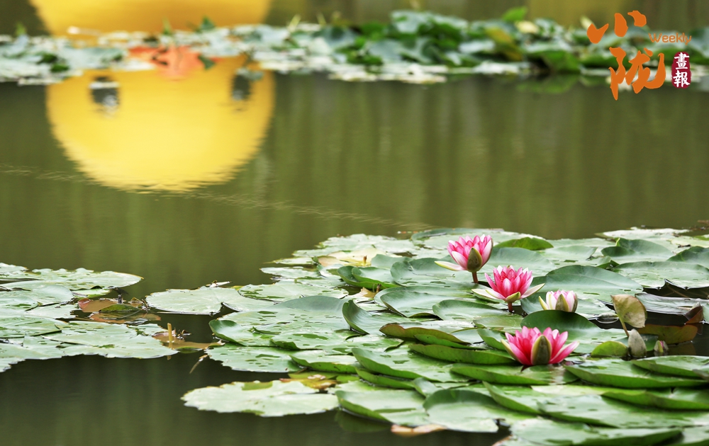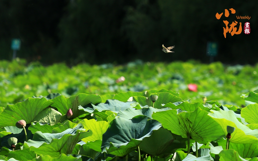 低頭凝望荷塘,荷葉像一把把撐開(kāi)的綠傘鋪展在水面上,遮住了秋日的熱氣,給大地帶來(lái)一片清涼。荷花、睡蓮點(diǎn)綴其中,雀鳥(niǎo)在水天之間嬉戲盤旋,時(shí)而點(diǎn)水,時(shí)而落于荷花之上,于遠(yuǎn)處觀賞這份和諧景致,真是別有一番趣味。