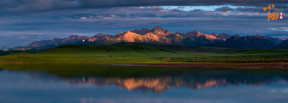 站在祁連山主峰冷龍嶺北坡瞭望,廣袤無垠的草原一片金黃,遠(yuǎn)方是連綿的祁連山,眼前是鸞鳥湖,遠(yuǎn)山近水,充滿了秋色的誘惑。