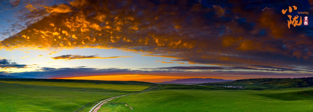 夕陽西下的時(shí)候,晚霞將西邊的天空映得通紅,云朵如火焰般燃燒。而此時(shí),五彩的山巒與綠色的草原相互映襯,形成鮮明對比,十分壯觀和漂亮。
