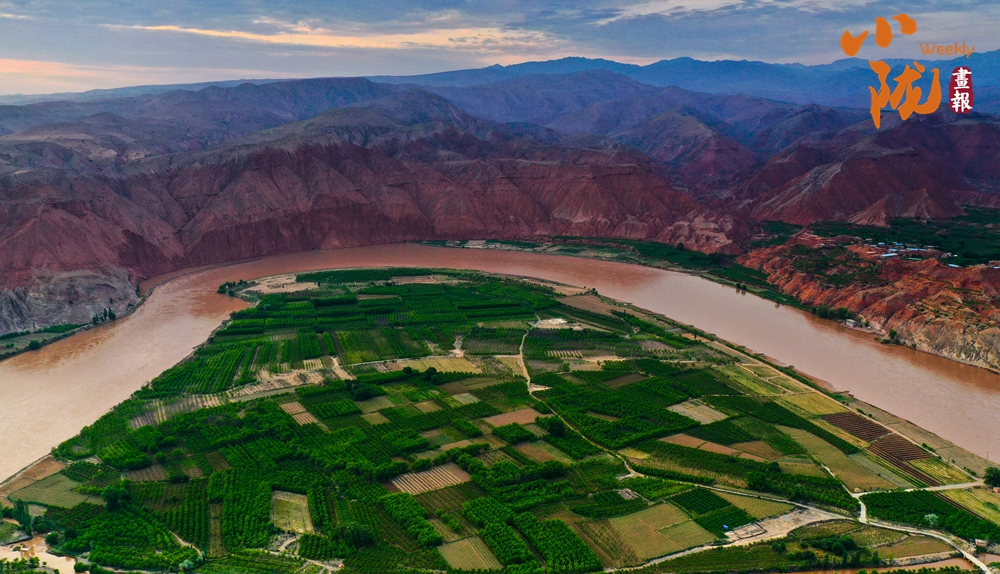 沿著黃河岸邊望去,大片綠色田園如翡翠般鑲嵌在廣袤曠野之中。阡陌縱橫間,莊稼隨風(fēng)搖曳,為蒼涼的河谷增添了一抹靈動的柔情。遠(yuǎn)處的村落、搖曳的蘆葦、穿梭的飛鳥,與紅山碧水共同繪就了一幅層次豐富的山水畫卷?!?/p>