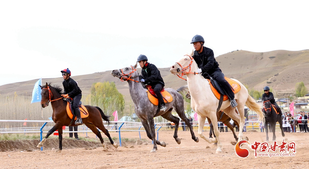 10月14日,山丹縣的一場賽馬會上,騎手們正策馬揚(yáng)鞭,為游客展示多項(xiàng)馬術(shù)項(xiàng)目。山丹縣毗鄰祁連山自然保護(hù)區(qū)和山丹軍馬場,坐擁優(yōu)質(zhì)草場資源,養(yǎng)馬歷史逾兩千年,馬文化底蘊(yùn)深厚,產(chǎn)業(yè)基礎(chǔ)扎實(shí)。近年來,當(dāng)?shù)貒@馬文化主題,建設(shè)了賽馬場、觀光馬道、育馬基地等設(shè)施,致力于為游客與馬術(shù)愛好者打造一個(gè)獨(dú)具特色的馬文化體驗(yàn)地。
