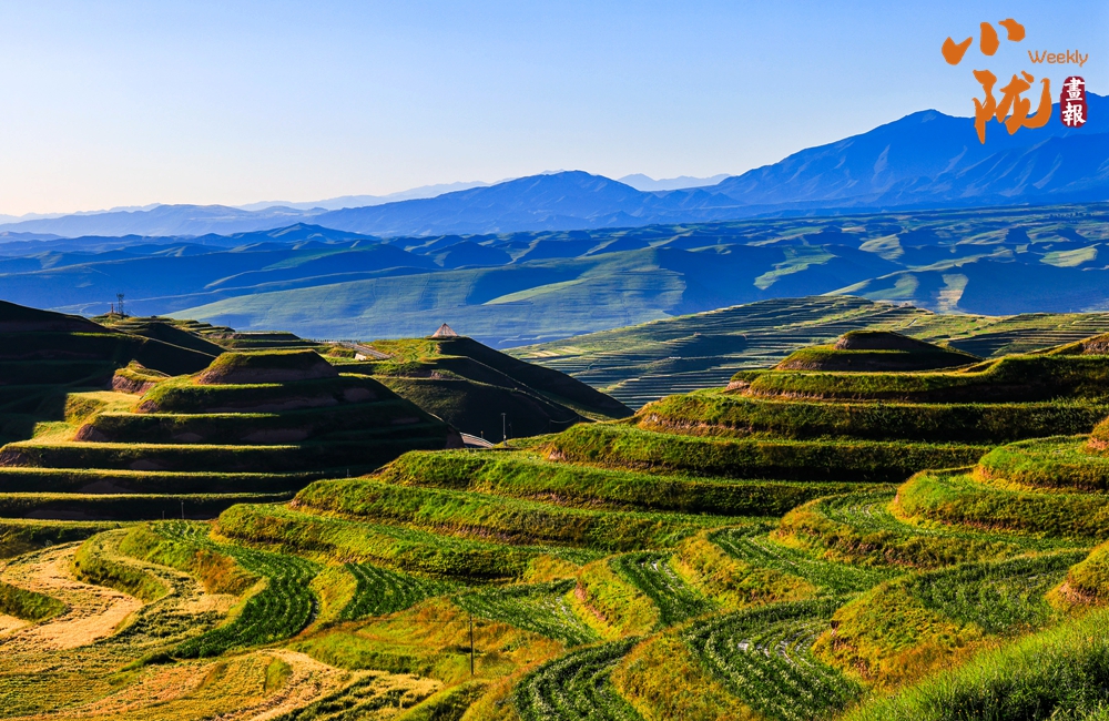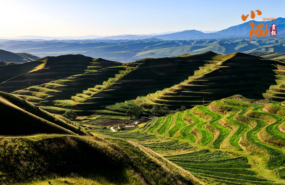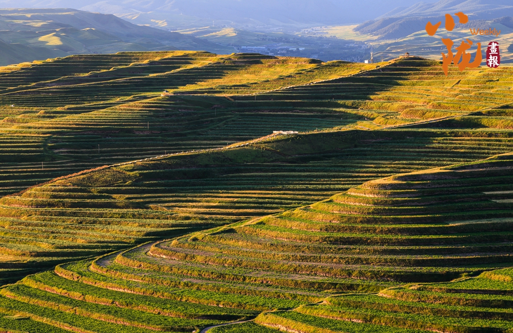 溝壑縱橫,滿目生綠。廣袤的田野在陽光下盡情綻放著大自然的絢麗多彩,熱烈地期盼著新季節(jié)的到來;羊群如散落的云朵,在坡地間緩緩移動,盡享這份寧靜與和諧。