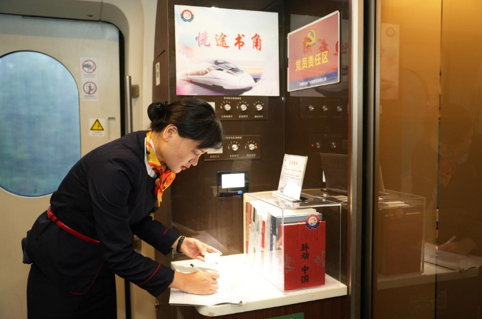 “建立讀書角,將‘全民閱讀活動’理念推進(jìn)到高鐵動車組上,讓閱讀成為旅客最好的陪伴。”長沙客運段動一車隊黨總支書記王艷萍談到“悅途書角”創(chuàng)辦理念時說。