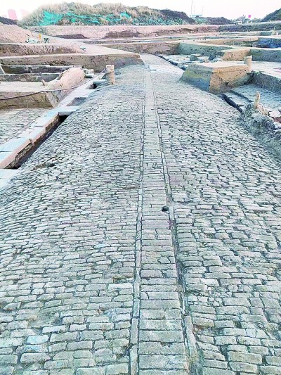 淮安新路遺址發(fā)現(xiàn)的一條寬約4米的道路 資料圖片