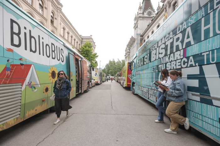 當(dāng)日,18輛裝備齊全的移動(dòng)圖書館車在盧布爾雅那國會(huì)廣場(chǎng)和維戈瓦街展出,以慶祝為期兩天的移動(dòng)圖書館節(jié)。