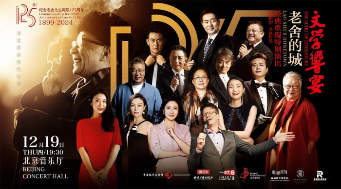 12月19日,一場獨(dú)特的文學(xué)“響”宴在北京音樂廳舉行。這是一期以老舍為文化主題的詩文雅集,一個(gè)關(guān)于歷史文化名城北京的年度盛典。在總導(dǎo)演陳薪伊的引領(lǐng)下,濮存昕、斯琴高娃、史可、陶虹、春妮、季冠霖、李立宏、任志宏、徐濤、大山、李洪濤、小柯、張樹榮等眾多著名藝術(shù)家,共同誦讀老舍先生的經(jīng)典名作,向這位偉大的人民藝術(shù)家致敬。