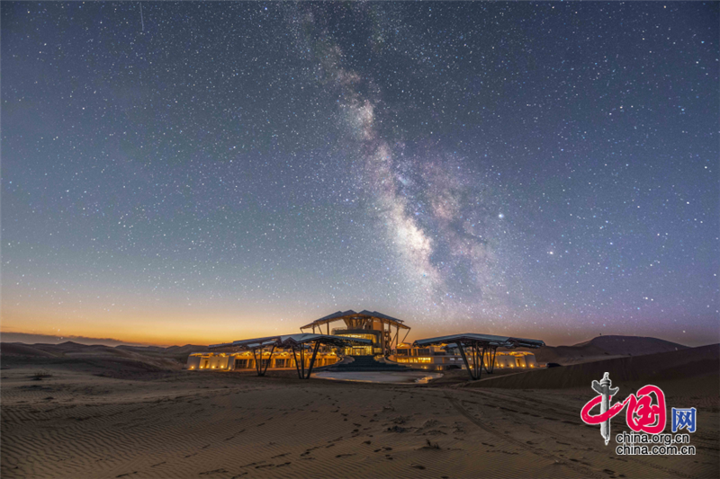 在沙漠區(qū),游客晨觀大漠日出,昏賞沙海夕陽(yáng),夜晚宿在星星酒店,感受躺在床上看星星的奇妙體驗(yàn),在星咖啡手工制作星星原木版畫,在五行沙療室滋養(yǎng)生命的每一個(gè)細(xì)胞,在觀星谷跟著星空講師春看獅子座、夏觀銀河、秋尋仙女座、冬追獵戶座,期待與一場(chǎng)流星雨的不期而遇。